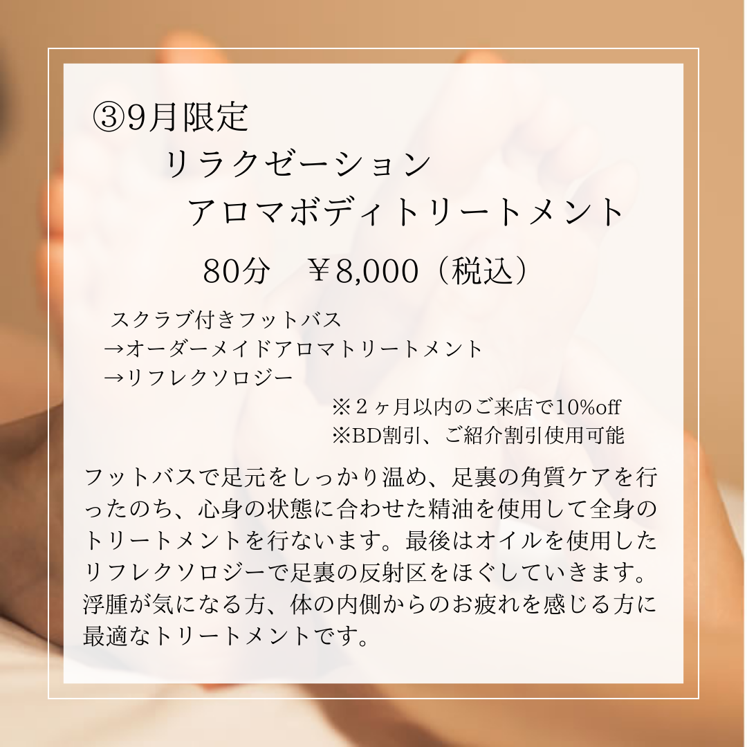【ご予約ページ 9月限定リラクゼーションアロマ】
