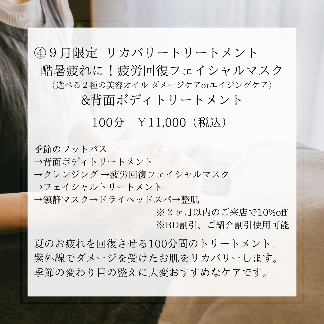 【ご予約ページ 9月限定フェイシャル&背面】