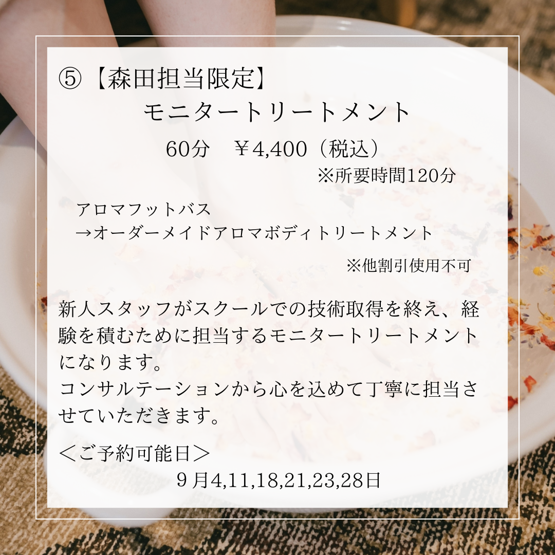 ◆【森田担当限定】モニターボディトリートメント 60分 モニター価格4400円