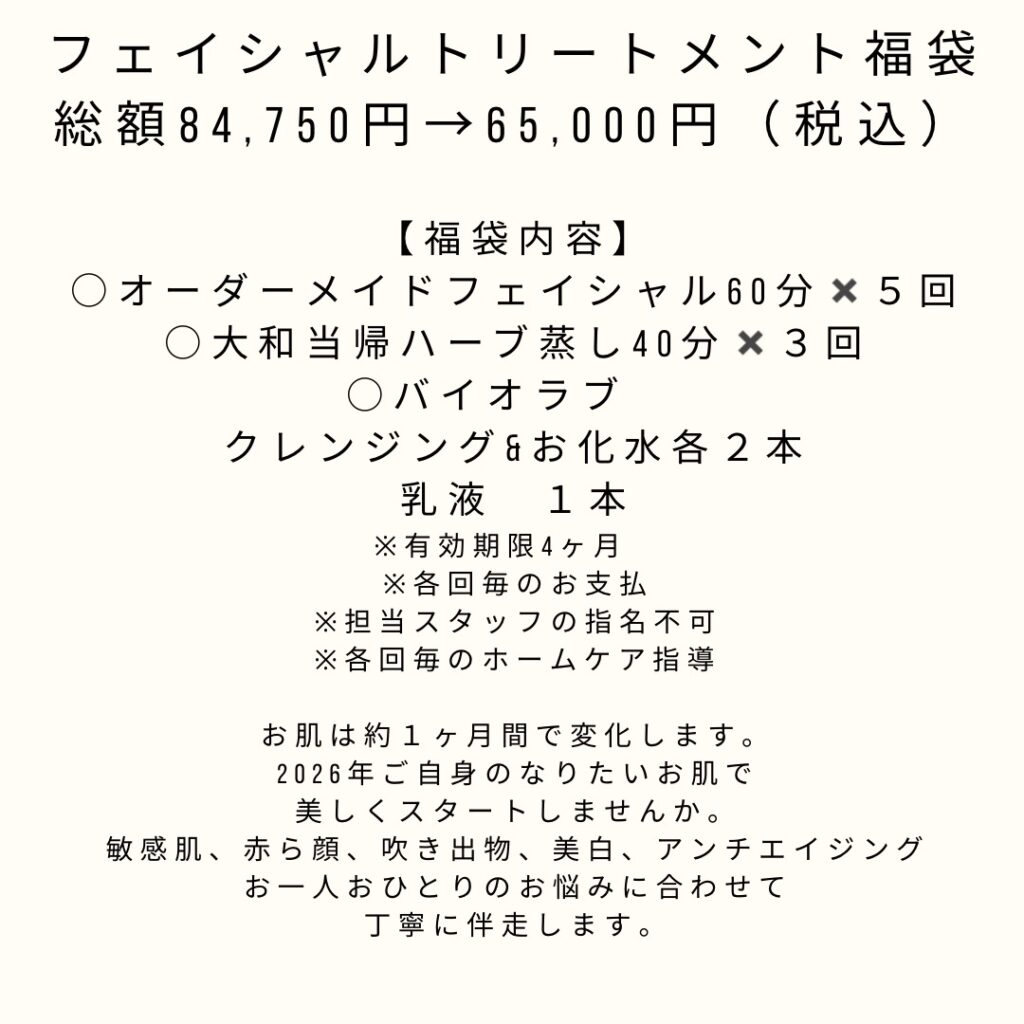 福袋メニュー② フェイシャルトリートメント福袋 65,000円