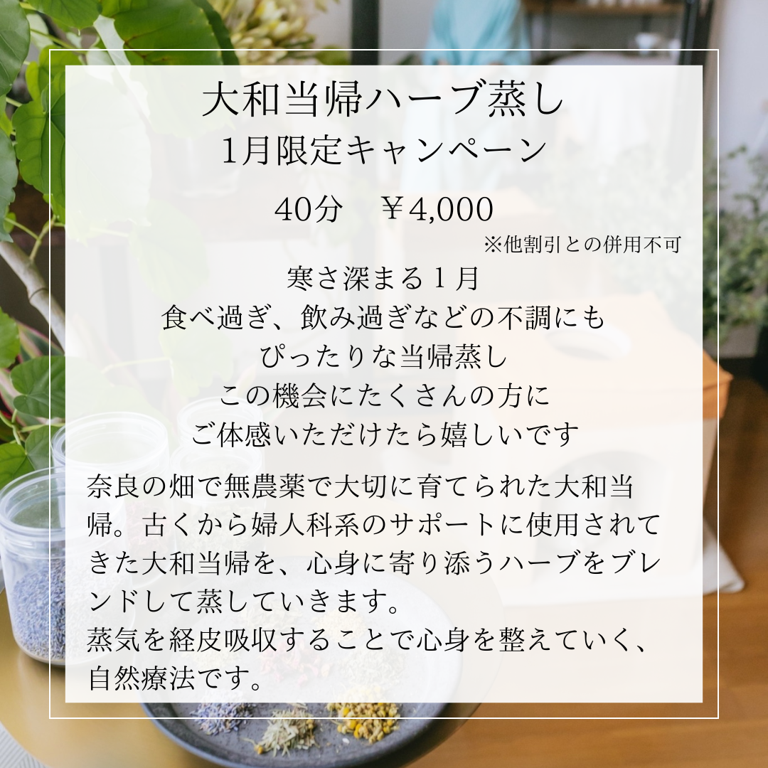 【ご予約ページ 1月限定価格 大和当帰ハーブ蒸し】
