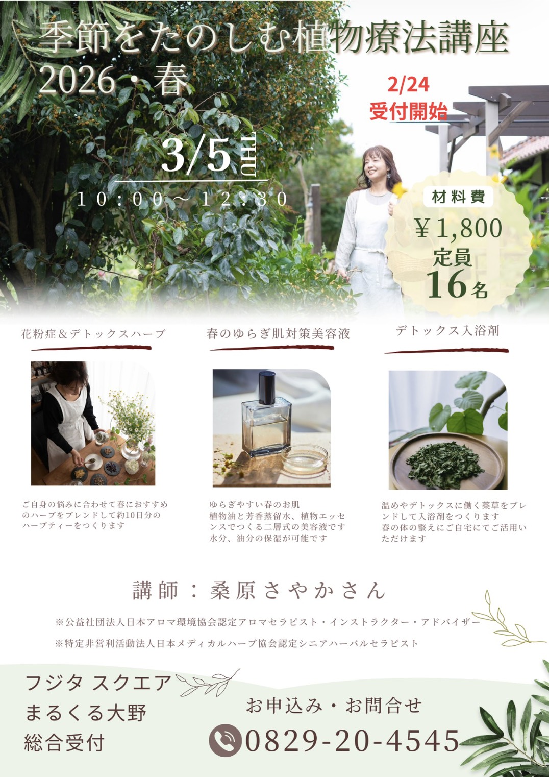 ◆5日(木)季節をたのしむ植物療法講座・春